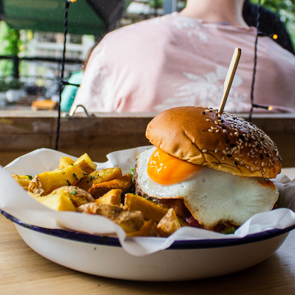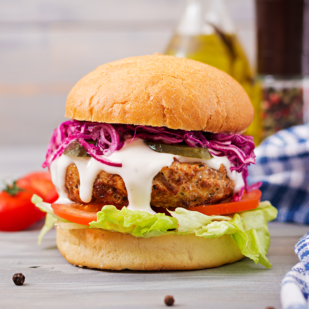 برجر الدجاج والبيض المقلي